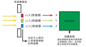 。探測器接收到入射光后直接進行積分測量,得到三刺激值X、Y、Z,測量原理如圖5所示。