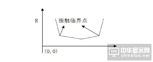 由上圖可以看出,如果是有效地觸摸的話,電阻的變化率不會太大,如兩接觸臨界點之間的電阻變化率就不是太大;但如果采樣點正好落在接觸臨界點上,而且這個值小于2kΩ,那么,這個點就應該視為無效點,用采樣的總和減去這個最大值的點就可以了。但是,如果在這一點上采樣兩次,它的影響就會明顯表現出來了。檢測出來的點將會使顯示結果出現跳越。所以對這一類無效的點,最安全的做法就是將其直接剔除。可以在程序中設定:完成一次觸摸以后,判斷阻值的變化,比較最大值和最小值之間的差值,如果兩個值的差值超過100Ω,則說明采樣點在臨界點上或者在臨界點之外,判斷為無效點,程序跳轉到開始,重新開始檢測點,這樣就可以把這一類的點剔除掉。