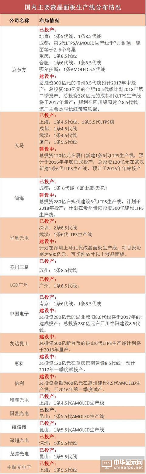 深超和京東方:由于深超和京東方也在大幅增加LTPS面板的供貨量,2015年國內面板企業在國內前十大手機品牌中使用LTPS面板的比重突破20%,市場份額同比增加約15%。2016年京東方成都AMOLED“超級工廠”7月封頂,建面等于2.5個鳥巢。