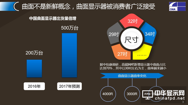 正是基于這樣的背景,曲面屏開始在2016年井噴。根據中怡康時代市場研究的數據顯示,2016年國內的曲面顯示器預計出貨量可達200萬臺,到了2017年則將達到500萬臺。而且在高端網吧新增顯示器中曲面高達70%,并且以30英寸為主,更傾向于低曲率的曲面顯示器。高端網吧(網咖)主要服務較高層次的游戲玩家,他們對于游戲的體驗要求更高。這被認為是網吧管理者與玩家之間共同對曲面顯示器產生了“高端”的認可,即便它們使用的曲面顯示器也未必會比高端平面顯示器的價格更貴。