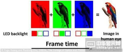 之前(qian)三星利用克爾效(xiao)應(ying)(ying),讓藍(lan)相液(ye)晶(jing)發(fa)出紅、綠(lv)、藍(lan)光(guang)(guang),然后(hou)根據(ju)所需要的顏色(se),在10倍(bei)于(yu)普通(tong)液(ye)晶(jing)的響應(ying)(ying)時間(jian)里讓像素(su)快(kuai)速(su)閃(shan)爍,直(zhi)接(jie)混合(he)(he)紅、綠(lv)、藍(lan)三種(zhong)色(se)彩(cai)。吳詩聰(cong)團隊的方案據(ju)說是使(shi)用了紅、綠(lv)、藍(lan)三種(zhong)LED背光(guang)(guang)燈,在亞毫秒級(ji)的響應(ying)(ying)時間(jian)里進(jin)行快(kuai)速(su)切換(huan)。由(you)于(yu)閃(shan)爍時間(jian)極為迅速(su),肉眼無法捕捉(zhuo),因此我們看(kan)到的直(zhi)接(jie)就是混合(he)(he)后(hou)的色(se)彩(cai),而非普通(tong)電(dian)視那樣間(jian)接(jie)混合(he)(he)RGB三色(se)。
