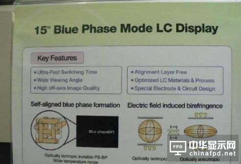 世(shi)界上第一款藍(lan)(lan)相(xiang)液(ye)晶(jing)面板由三星于2008年推出,基于藍(lan)(lan)相(xiang)液(ye)晶(jing)的(de)技術特點,這塊面板達(da)到(dao)了(le)240Hz的(de)高刷新率,但同(tong)時存在著需要高電壓、發熱量大以及(ji)顯示(shi)對比(bi)度低的(de)缺點。