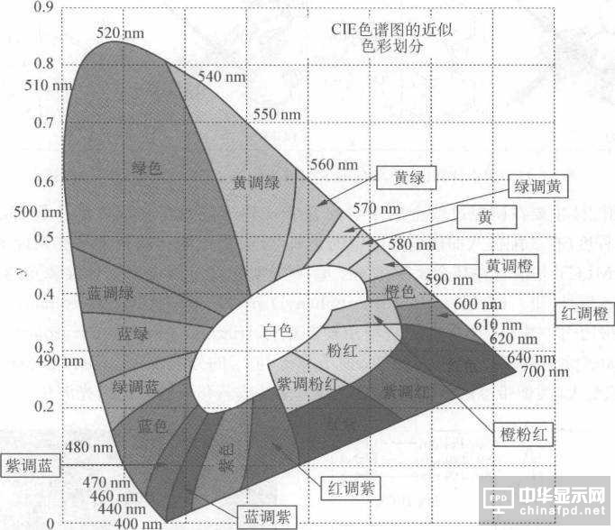 1931CIEx,y 色坐標的色彩劃分范例圖