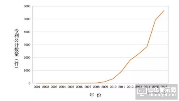 圖5 中國受理的石墨烯公開專利數量年度變化趨勢
