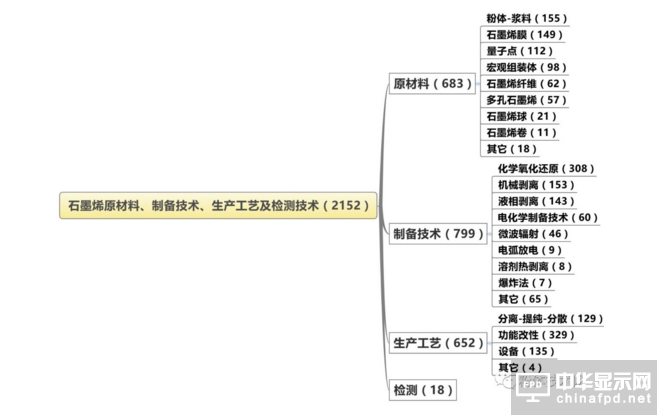 目前涉及石墨烯原材料、制備技術、生產工藝和檢測技術的發明專利一共有2152件。