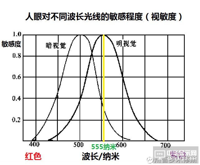 雖然(ran)人(ren)(ren)(ren)眼能(neng)看到可(ke)見光(guang)(guang)譜范圍內的(de)(de)光(guang)(guang)線,但是對(dui)不同(tong)(tong)頻率的(de)(de)光(guang)(guang)線敏(min)感(gan)度不同(tong)(tong)。也就(jiu)是說如果不同(tong)(tong)顏色(se)(se)的(de)(de)光(guang)(guang)線客觀能(neng)量一樣,但是人(ren)(ren)(ren)眼感(gan)覺出來的(de)(de)亮度是不同(tong)(tong)的(de)(de),紅色(se)(se)、藍色(se)(se)、紫色(se)(se)需要更(geng)亮才能(neng)讓人(ren)(ren)(ren)眼充分看出來,人(ren)(ren)(ren)眼對(dui)波長(chang)555納米的(de)(de)黃綠色(se)(se)最敏(min)銳,同(tong)(tong)時(shi)不同(tong)(tong)亮度下人(ren)(ren)(ren)眼對(dui)不同(tong)(tong)顏色(se)(se)的(de)(de)視敏(min)度有(you)所變化,強光(guang)(guang)時(shi)對(dui)高頻光(guang)(guang)更(geng)敏(min)感(gan),弱光(guang)(guang)時(shi)對(dui)低頻光(guang)(guang)更(geng)敏(min)感(gan)。