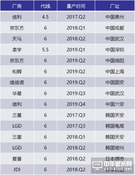 中日韓三國在未來三年將開出多達15條的AMOLED新產能