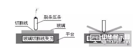 刀輪(lun)切割(ge)是(shi)最為(wei)傳統的(de)切割(ge)方案,成本低(di),一般用于直(zhi)線切割(ge),精(jing)度在(zai)80um左右(you)。刀輪(lun)切割(ge)的(de)具(ju)體(ti)流程(cheng)是(shi)先(xian)用刀輪(lun)在(zai)玻璃上劃出切口,再通過裂(lie)片機(ji)完成裂(lie)片。