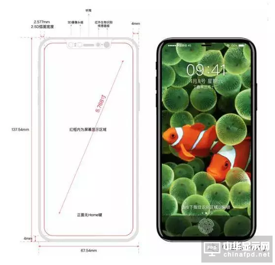 早在一個月之前(qian),已(yi)經有(you)人表示iPhone 8幾乎沒有(you)邊(bian)(bian)框(kuang),四邊(bian)(bian)只有(you)極窄的邊(bian)(bian)框(kuang),只有(you)頂部(bu)采(cai)用了“凹(ao)口”設計,以容納前(qian)置攝像頭和聽筒。
