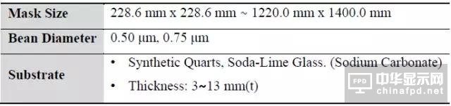 Display 產線上使用(yong)的Mask 為兩種:Array 段和CF 段 (TFT-LCD)用(yong)的、以石英玻(bo)璃為基礎材料的曝光Photomask; 和AMOLED 段以金屬為基本(ben)材料的Mask (Open Mask & FMM)。