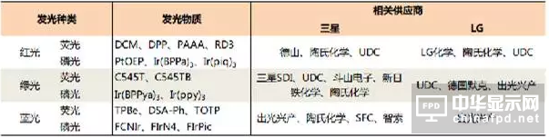 美國UDC,日本出光興產、三井化學、三菱化學,韓國三星SDI、斗山電子、德山、LG化學