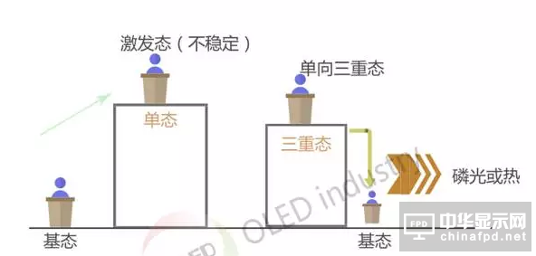 實際(ji)上,OLED的“發光(guang)”分為(wei)(wei)熒(ying)光(guang)和(he)磷光(guang)兩(liang)種(zhong),發光(guang)就是(shi)“先實現高能(neng)(neng)量(liang)(liang)狀態的,然后從這(zhe)(zhe)個高能(neng)(neng)量(liang)(liang)狀態躍遷下來并釋放(fang)能(neng)(neng)量(liang)(liang)”,這(zhe)(zhe)種(zhong)“高能(neng)(neng)量(liang)(liang)狀態”分為(wei)(wei)兩(liang)種(zhong),可(ke)以想象為(wei)(wei)這(zhe)(zhe)樣:
