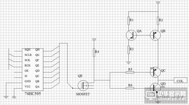 行驅動(dong)電路接收這些(xie)信號,當移(yi)位寄存器輸出的為(wei)高(gao)電平時,該行的MOSFET管導通,選擇適當的電阻R,使得三(san)級(ji)管輸出到行電極的為(wei)低電平,該行就被導通。