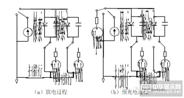 1、當行掃描開始(shi)后,先采(cai)用(a)所示電(dian)(dian)路CD放電(dian)(dian),行列驅動電(dian)(dian)路均接地,使電(dian)(dian)容兩端電(dian)(dian)壓(ya)為零。