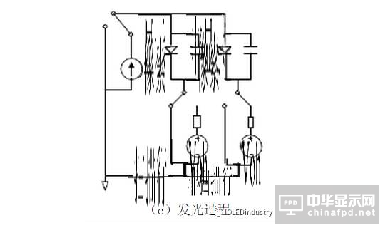3、預充電(dian)(dian)結束后,利用(yong)圖5(c)所示電(dian)(dian)路發光階段,此(ci)時(shi)掃描行的CD兩(liang)端(duan)電(dian)(dian)壓為(wei)PREV(接(jie)(jie)近(jin)OLED閾值(zhi)電(dian)(dian)壓),行驅動電(dian)(dian)路接(jie)(jie)地,列驅動電(dian)(dian)路接(jie)(jie)恒流(liu)源。