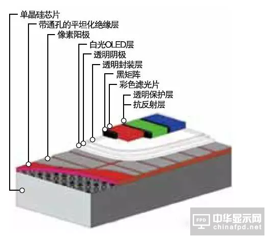 單晶硅芯(xin)片采用(yong)現(xian)有成(cheng)熟(shu)的集成(cheng)電路(lu)CMOS工藝(yi),不但(dan)實現(xian)了(le)顯(xian)示屏像(xiang)素(su)的有源尋(xun)址矩陣,還(huan)在硅芯(xin)片上實現(xian)了(le)如(ru)SRAM存儲器、T-CON等多種功能的驅動(dong)控制(zhi)電路(lu),大大減少了(le)器件的外(wai)部連線,增加里可靠(kao)性,實現(xian)了(le)輕量化。