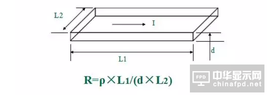 d為膜厚(hou),I為電(dian)流,L1為膜厚(hou)在電(dian)流方向上的(de)(de)(de)長(chang)度(du),L2為膜層在垂直電(dian)流方向的(de)(de)(de)長(chang)度(du),ρ為導(dao)電(dian)膜的(de)(de)(de)體電(dian)阻率。ρ和d可以認為是(shi)不變的(de)(de)(de)定值,當L1=L2時,為正方形(xing)的(de)(de)(de)膜層,無論方塊大小如何,其電(dian)阻率為定值ρ/d,這就是(shi)方塊電(dian)阻的(de)(de)(de)定義,即R=ρ/d