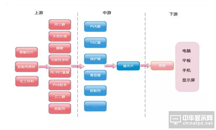 偏光(guang)片上游是(shi)光(guang)學材料供(gong)應商,下游是(shi)液(ye)晶顯示模組廠(chang)商及各(ge)類終(zhong)端產(chan)品生(sheng)產(chan)廠(chang)商。