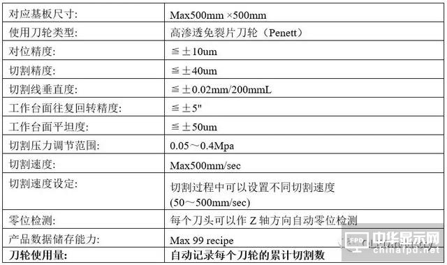 切割工藝的設備構成和主要性能指標