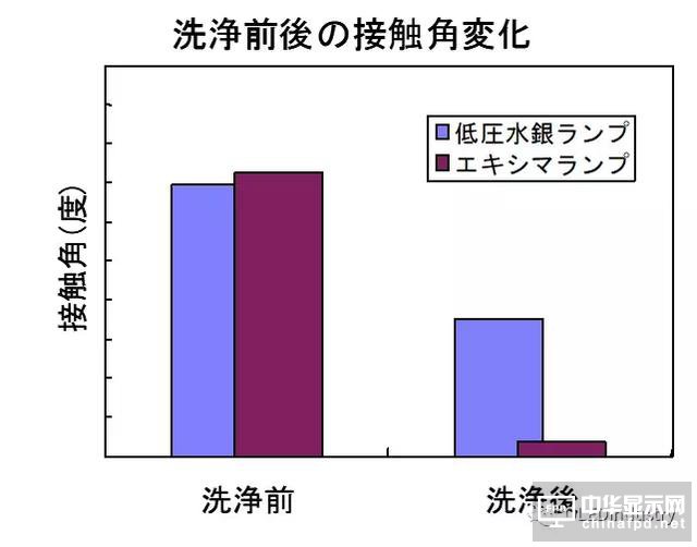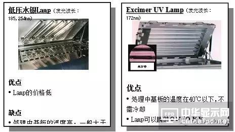 紫外線照射清洗的原理是利用UV燈,在工作時發出的短波紫外線進行清洗。紫外線是具有較高的能量,而且波長越短的紫外線能量越高。當紫外線照射到污垢上時,污垢分子吸收光能會處于高能量的激發狀態并可能發生分子內的化學鍵斷裂而分解。同時紫外線會使得基板表面的接觸角大大降低,這會有利于PI的印刷。