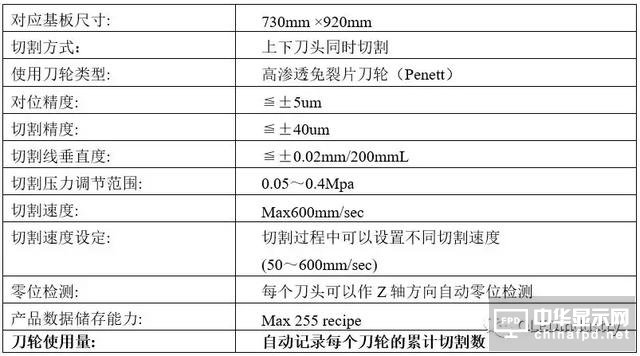 該設備主要用于In-line切割機切割后的四分之一或六分之一液晶顯示面板的快速高精度切割,把面板切割成10英寸以下的單片玻璃。設備由人工上下料及翻轉,通過標記自動對位,刀頭節距信息輸入及刀頭條件的程序化設定,實現自動對位切割。