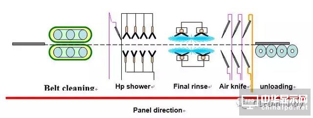 上圖顯示的是通常的PI前清洗設備的主要構成和工藝過程,每一個組成部分均有很重要的作用,下文將做分別介紹: