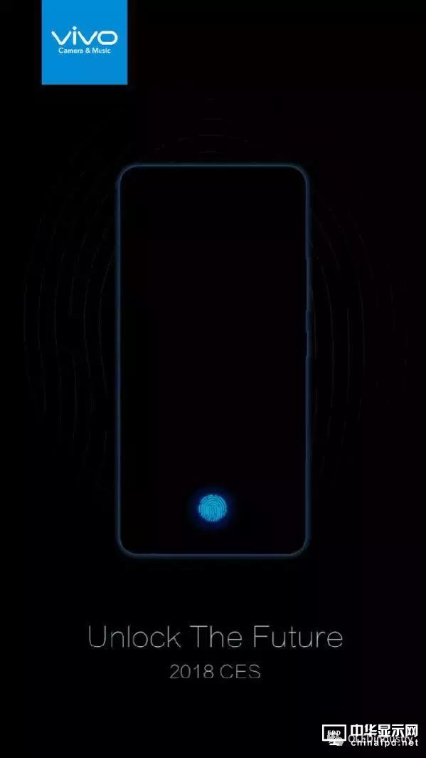 vivo官方宣布,將于1月10日2018 CES會展上,亮相“黑科技”——屏下指紋解鎖。海報中出現了一款手機的輪廓,并有標語“解鎖未來”。