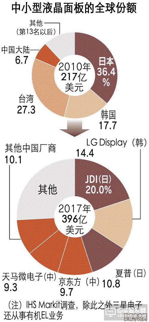 在日本,由6家機電企業組建(jian)的JDI和夏普從(cong)事液(ye)晶(jing)業務。與用(yong)于電視的大(da)(da)尺(chi)(chi)寸(cun)面板(ban)相比,手機、個(ge)人(ren)電腦及車(che)載(zai)用(yong)途(tu)的中(zhong)(zhong)小(xiao)尺(chi)(chi)寸(cun)面板(ban)在高清方(fang)面存在技術門(men)檻(jian)。日本廠商相繼從(cong)大(da)(da)尺(chi)(chi)寸(cun)轉向中(zhong)(zhong)小(xiao)尺(chi)(chi)寸(cun)。如今(jin),在政府資金的大(da)(da)力扶持下,不(bu)斷提高大(da)(da)尺(chi)(chi)寸(cun)面板(ban)領(ling)域市占率的中(zhong)(zhong)國廠商在中(zhong)(zhong)小(xiao)尺(chi)(chi)寸(cun)面板(ban)領(ling)域也(ye)在步(bu)步(bu)緊逼。