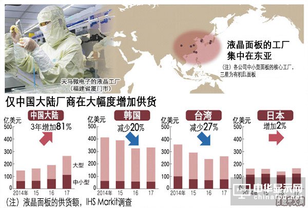 面(mian)(mian)板產業的(de)技(ji)術從日本傳(chuan)到(dao)(dao)韓國、臺灣,如(ru)今又傳(chuan)到(dao)(dao)中(zhong)(zhong)國大(da)陸。以(yi)鉅額(e)資金(jin)為背(bei)景,擁有(you)后發優(you)勢(shi)的(de)中(zhong)(zhong)國大(da)陸廠(chang)(chang)商(shang)也(ye)開始(shi)掌握(wo)生產技(ji)術,日韓臺廠(chang)(chang)商(shang)將難以(yi)確保技(ji)術優(you)勢(shi)。源自中(zhong)(zhong)國的(de)供應(ying)過(guo)剩在鋼鐵和(he)光伏(fu)面(mian)(mian)板等領域曾經多次出現,或許也(ye)將蔓延到(dao)(dao)面(mian)(mian)板產業。