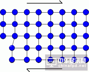 原來,晶(jing)體(ti)(ti)其實并(bing)不像人們(men)之前認(ren)為的那么(me)完美(mei),它們(men)內部原子的排(pai)列會有局部的缺陷(xian),而這些缺陷(xian)就(jiu)形成了位(wei)錯(cuo)。當材(cai)料受力(li)的時候,這些位(wei)錯(cuo)會發生移動,從(cong)材(cai)料的內部移動到(dao)表面(mian)(這一(yi)過(guo)程可以由下面(mian)的動圖表示(shi))。對(dui)于(yu)完美(mei)的晶(jing)體(ti)(ti),拉斷它們(men)需要(yao)打斷橫(heng)截面(mian)上(shang)的所(suo)有原子。而對(dui)于(yu)有位(wei)錯(cuo)的晶(jing)體(ti)(ti),只要(yao)破壞位(wei)錯(cuo)附近少數原子即可,因此(ci)所(suo)需的外加(jia)力(li)量將大(da)大(da)降低[3]。