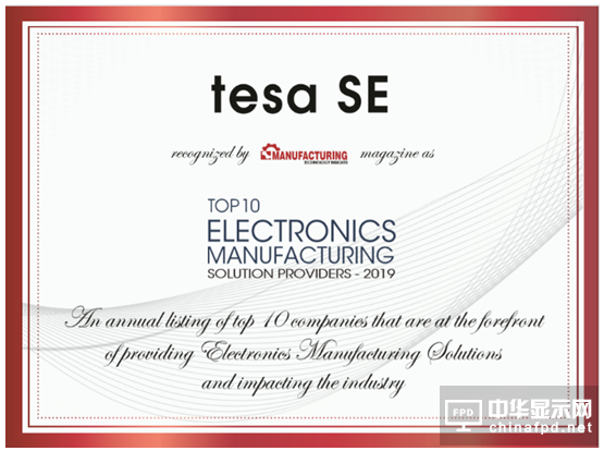 近期,德莎榮膺由美國知名雜志《Manufacturing Technology Insights》評選的2019全球十大電子制造解決方案供應商稱號,憑借創新的膠粘解決方案助力電子制造行業持續發展。