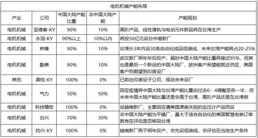 電源供應器龍頭業者臺達電(2308)產能約7成集中于中國大陸,以2020年資本支出5.8億美元分布上,將會應用在中國臺灣、中國大陸、泰國、印度等地進行自動化及建廠工作,未來更會透過泰國、印度等地新增的產能來平衡集中單一地域的風險。