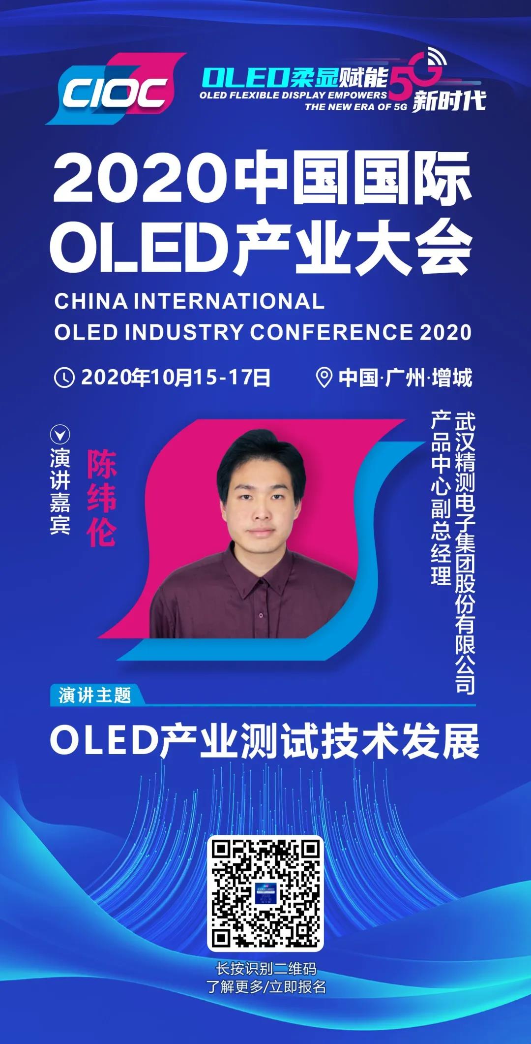 武漢精測電子集團股份有限公司產品中心副總經理陳緯倫已確認出席2020中國國際OLED產業大會。