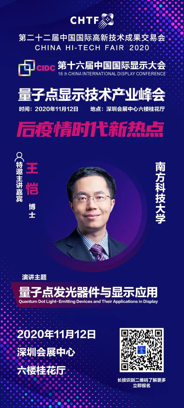第十六屆中國國際顯示大會(CIDC2020)——量子點顯示技術產業峰會