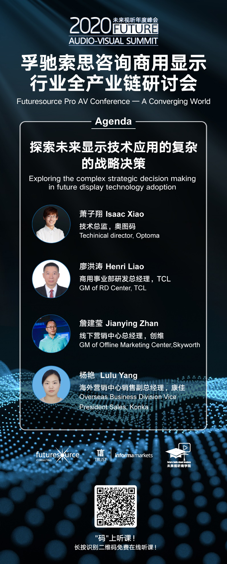 未來視聽年度峰會在LED CHINA 2020 期間,聯合了總部在英國的專業市場研究和咨詢公司Futuresource,舉辦了【孚馳索思咨詢商用顯示行業全產業鏈研討會】——互聯互通的世界。