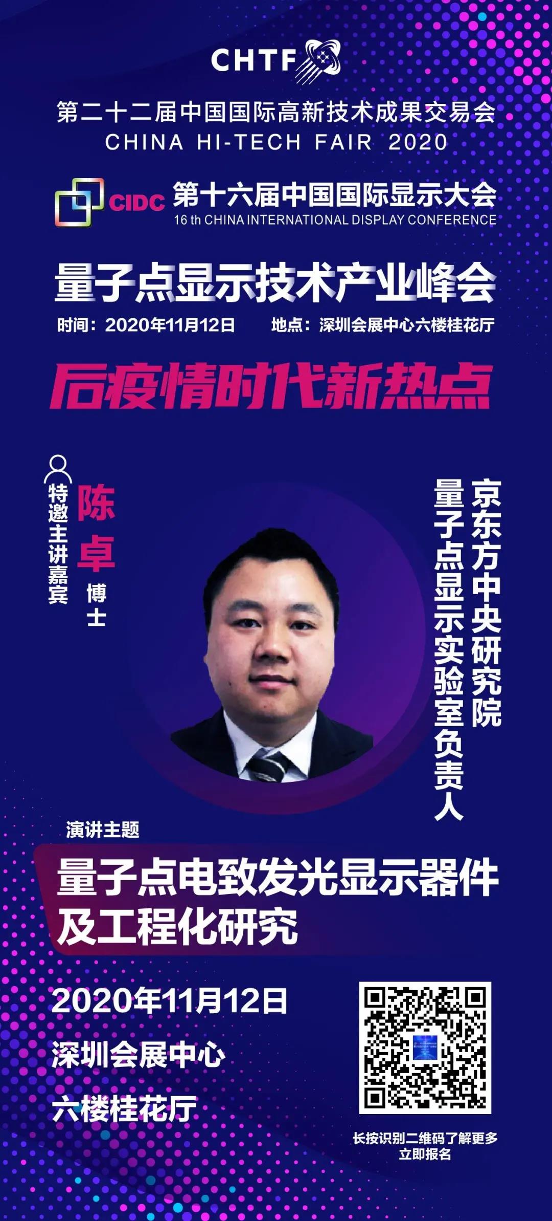 第十六屆中國國際顯示大會(CIDC2020)——量子點顯示技術產業峰會