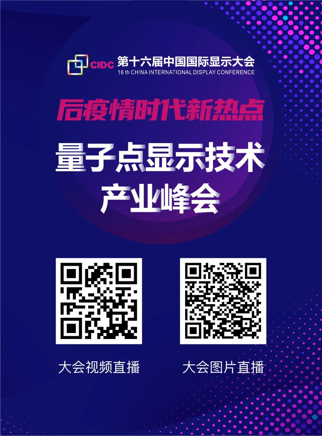 2020年11月12日,第二十二屆高交會光電顯示展期間,第十六屆中國國際顯示大會(CIDC2020)——量子點顯示技術產業峰會在深圳會展中心桂花廳成功舉行。