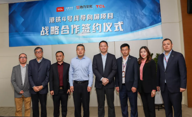 近日,TCL華星、協力文化和TCL商用三方在深圳簽署戰略合作協議,就港鐵4號線導向屏項目展開合作。