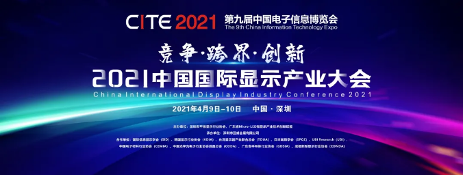第九屆中國電子信息博覽會(CITE2021)已定檔于2021年4月9日—11日在深圳會展中心盛大召開。2021中國國際顯示產業大會將以“競爭·跨界·創新”為主題,通過“2021中國國際顯示產業領袖峰會”、“2021中國國際顯示產業大會主旨論壇”、“2021 Micro-LED 產業技術峰會”、“2021顯示產業本土化替代企業交流會暨一對一洽談會”等重磅活動,力邀顯示產業鏈的領軍企業和企業家,顯示學/協會負責人,知名專家、學者,以及產業界、投資界、媒體界的精英人士共同參會,就全球顯示產業發展全新格局,從行業、技術、設備、材料、應用端以及資本市場各個角度,探討顯示產業發展最新趨勢,共同分享顯示產業市場新機遇。