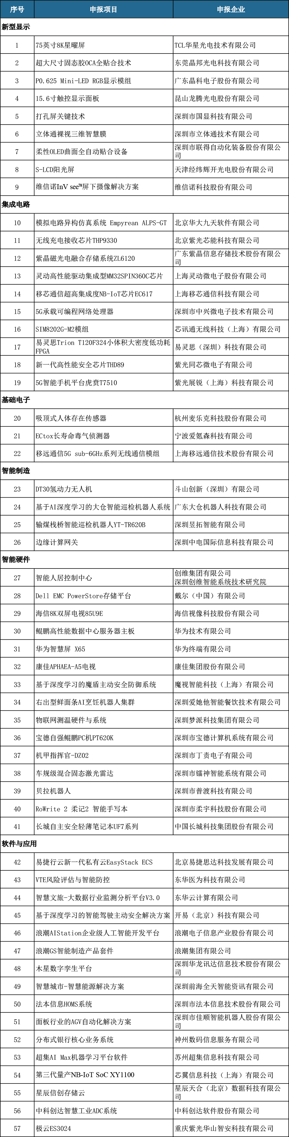 評審分為新型顯示、集成電路、基礎電子、智能網聯與新能源、智能制造、智能硬件、軟件與應用七大類,共有19位行業專家參加評選。共有78家企業申報,申報產品與應用93項。共評出:10項金獎;57項創新獎;未入選26項。