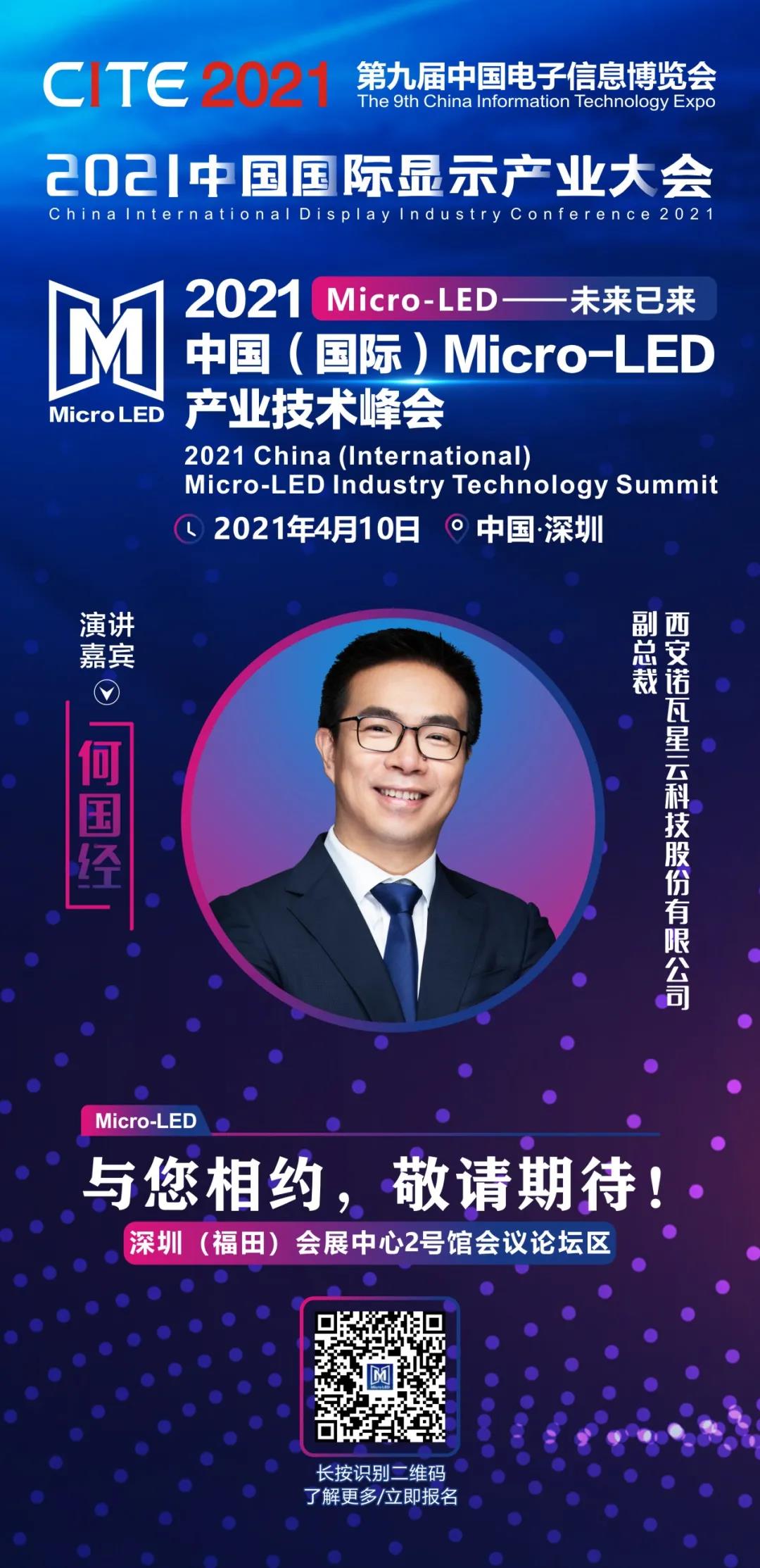 2021年4月10日,作為在深圳盛大舉辦的第九屆中國電子信息博覽會同期論壇活動——2021中國國際顯示產業大會系列活動之一,深圳市平板顯示行業協會聯合廣東省Micro-LED微顯示產業技術創新聯盟將舉辦“2021中國(國際)Micro-LED產業技術峰會”。以展會和論壇的相融合,深化“展”與“會”的互動,以展帶會、以會促展,更好的把握Micro-LED技術發展和商業應用。