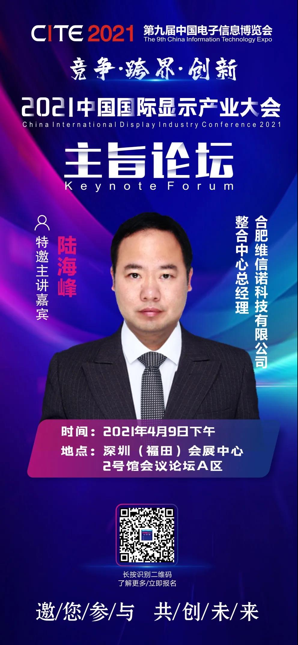 陸海峰,上海交通大學光學專業博士,資深技術專家,現任合肥維信諾科技有限公司整合中心總經理。從事平板顯示領域行業14年,擁有豐富的技術開發和科技成果轉化經驗。先后參與液晶顯示器國家標準制訂、VESA標準制訂、柔性良率提升(0-85%以上突破)等工作,主要承擔及參與政府項目14個。