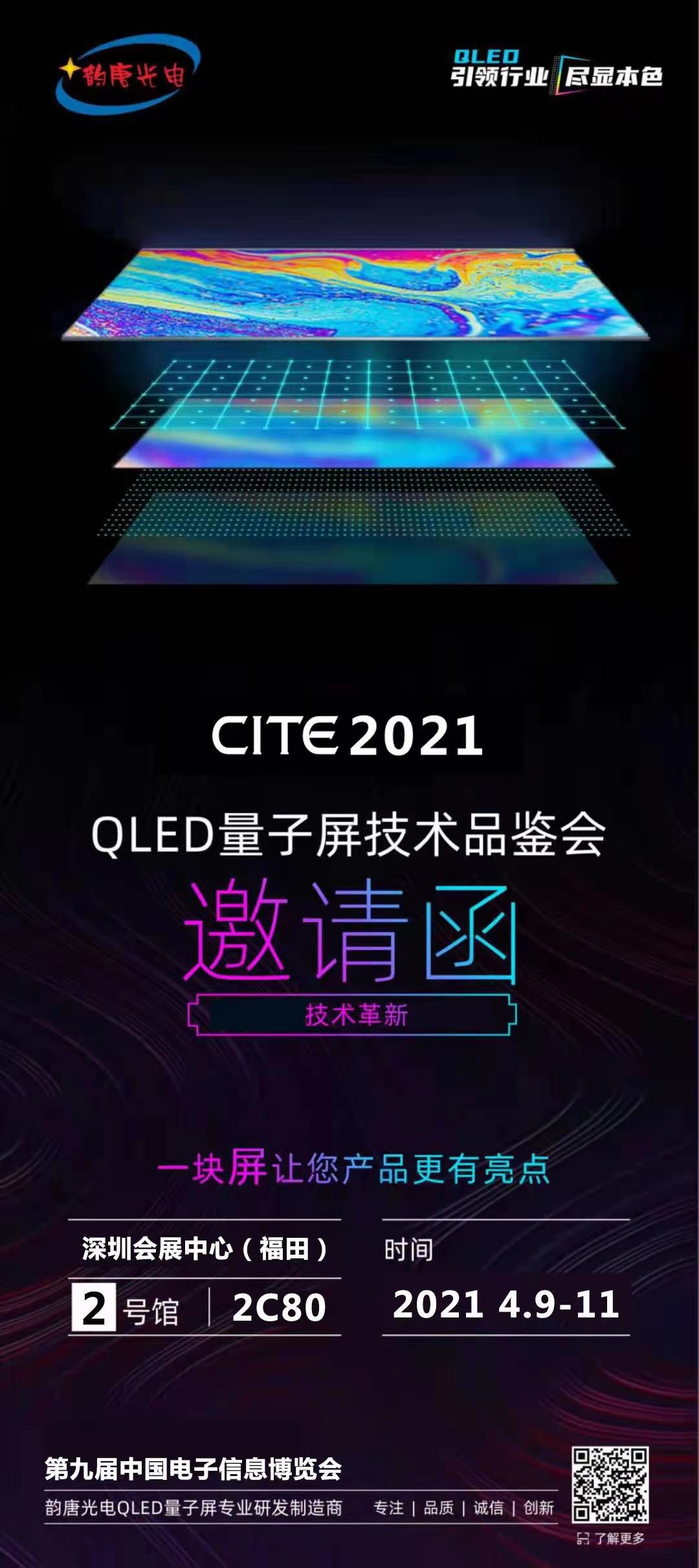 【韻唐光電】CITE 2021 QLED量子屏技術品鑒會邀請函