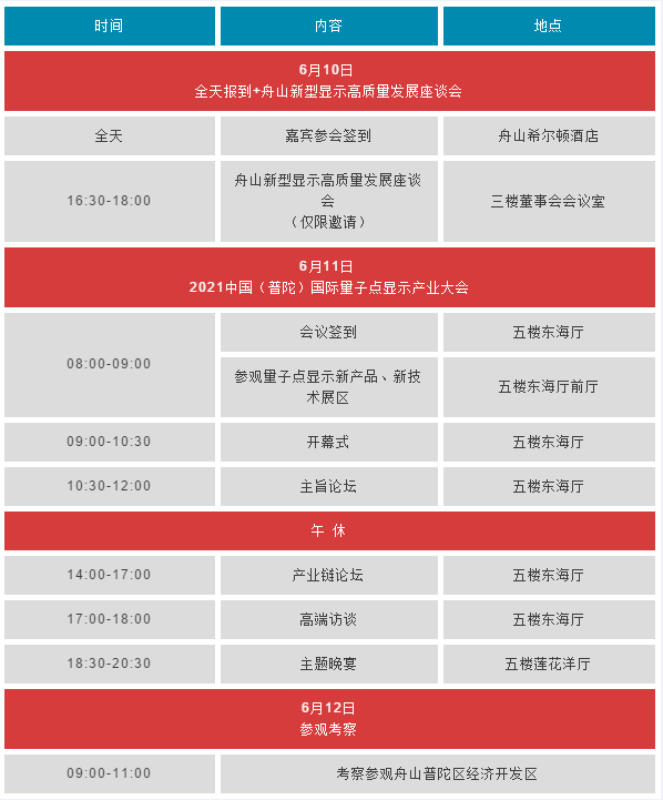 2021中國(普陀)國際量子點顯示產業大會將于2021年6月10日-12日在浙江舟山普陀區舉行。本次大會以“量子點賦能超高清時代”為主題,將重點聚焦量子點顯示技術發展趨勢及應用市場發展前景,從產業、技術、設備、材料、應用端以及資本市場多個角度,探討量子點顯示應用領域的階段性成果,共同迎接量子點顯示技術發展的最新機遇。