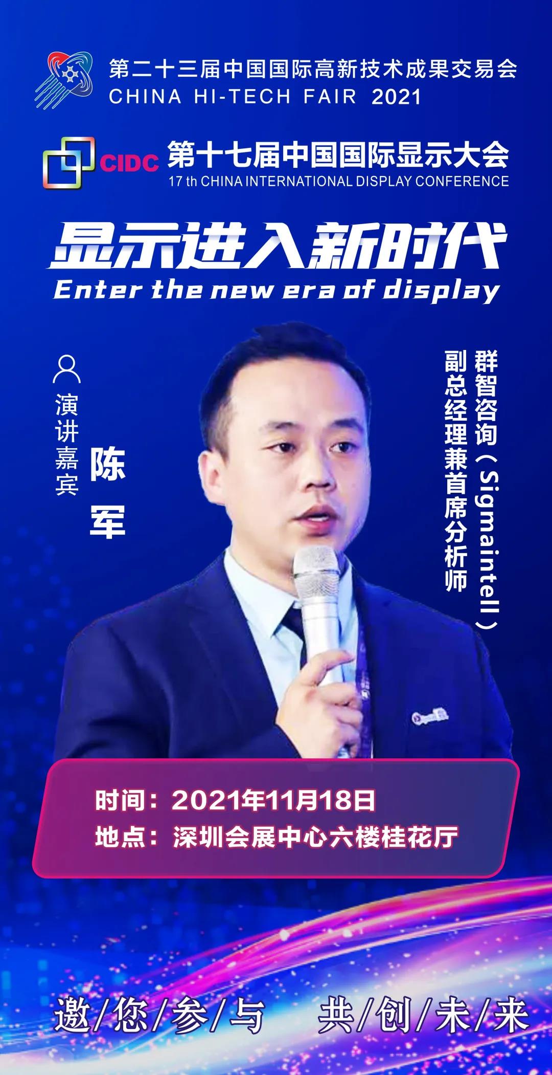 群智咨詢副總經理兼首席分析師陳軍確認出席CIDC2021并發表主題演講