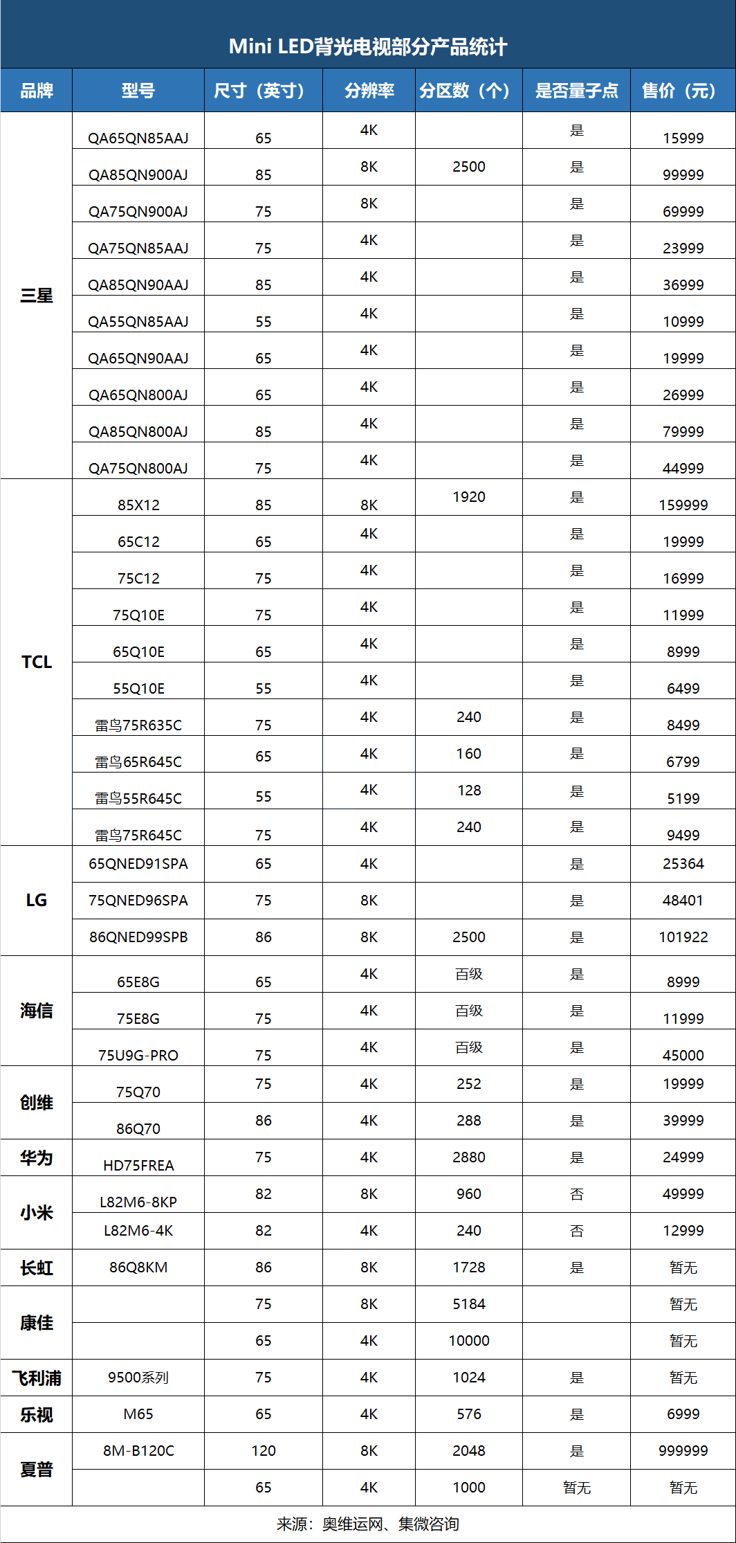 集微咨詢(JW insights)認為,Mini LED電視具有巨大的市場潛力,隨著Mini LED背光模組成本的持續降低,Mini LED電視市場將實現爆發式成長,超越OLED電視,成為中高端電視市場的主流。