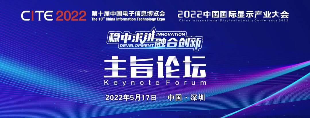 第十屆中國電子信息博覽會(CITE2022)以“奮進十載、智創未來”為主題,將于2022年5月17日—19日在深圳會展中心(福田)召開。展會同期將舉辦以“穩中求進,融合創新”為主題的2022中國國際顯示產業大會,屆時將有五場系列論壇,五場平行論壇,聚焦顯示市場發展趨勢和Mini/Micro-LED、柔性可折疊AMOLED、超高清視頻、元宇宙、鋰電產業等熱點話題,邀請頭部企業代表及權威大咖分享行業發展最新市場趨勢和技術熱點。