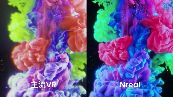 在多項顯示指標領先投影儀和VR眼鏡的基礎上,Nreal AR眼鏡與上述兩款產品分別播放同一段視頻內容時,Nreal AR眼鏡在色彩絢麗度和清晰度上更勝一籌,整體顯示效果也明顯優于其他兩款產品。