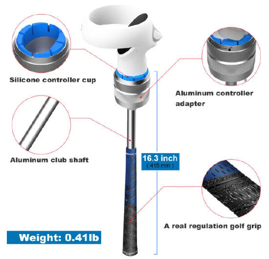 據悉,該設備長16.3英寸(415毫米),重約0.41磅,無論是輕推還是重推,都易于使用。該設備還具有調節高爾夫握把功能,讓用戶可以舒適地長時間玩。此外,鋁軸能夠從手柄無縫傳輸觸覺,擊球過程中的震動反饋可以很好地通過球桿傳導到用戶手中。