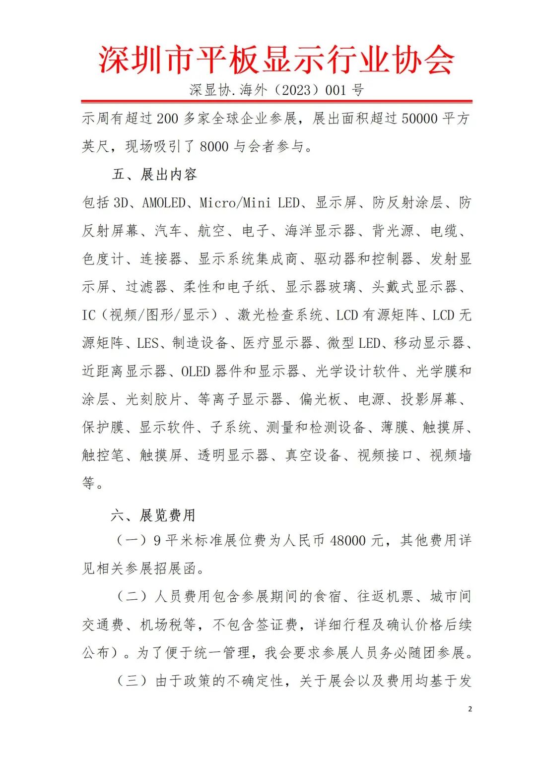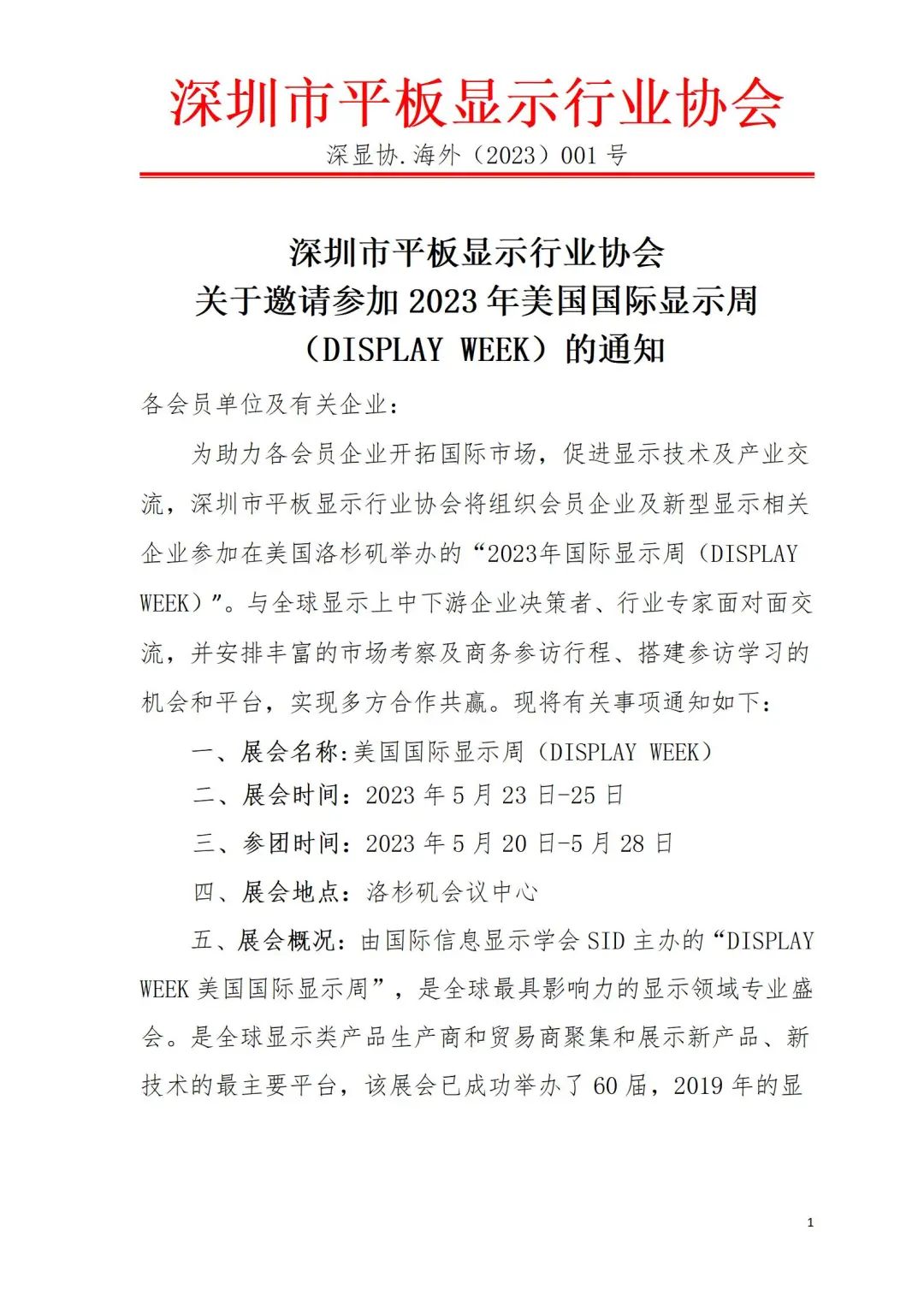 為助力各會員企業開拓國際市場,促進顯示技術及產業交流,深圳市平板顯示行業協會(SDIA)將組織會員企業及新型顯示相關企業參加DISPLAY WEEK 2023,與全球顯示產業鏈上中下游企業決策者、行業專家面對面交流,并安排豐富的市場考察及商務參訪行程、搭建參訪學習的機會和平臺,實現合作共贏!
